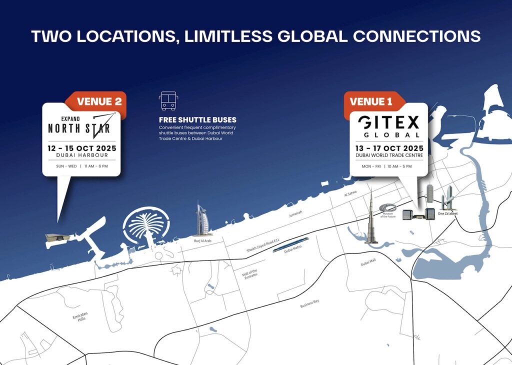 نمایشگاه GITEX GLOBAL ۲۰۲۵ بار دیگر با حضور گسترده شرکتها، استارتاپها، سرمایهگذاران و نهادهای دولتی از سراسر جهان در شهر دبی برگزار میشود. این رویداد از ۲۱ تا ۲۵ مهرماه ۱۴۰۴ در مرکز تجارت جهانی دبی (DWTC) برگزار میشود و همزمانt با بخش اصلی آن، بخش استارتاپی Expand North Star از ۲۰ تا ۲۳ مهر در بندر دبی اجرا خواهد شد.